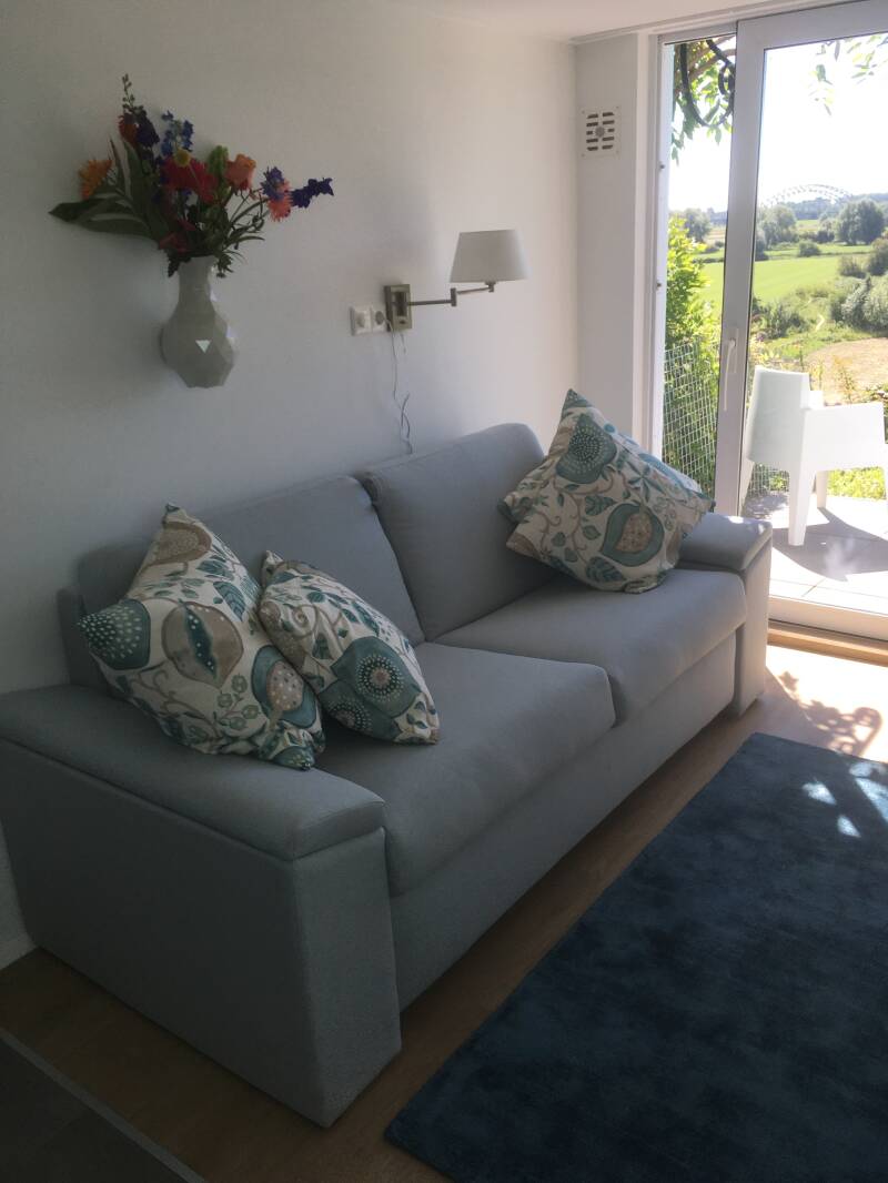 From the living room also you have a spectacular view on the floodplains. A television is present for your comfort.